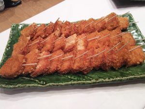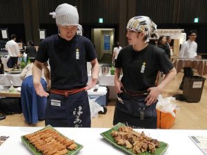 プレスの方々に大金星の唐揚とハムカツの試食をして頂き、